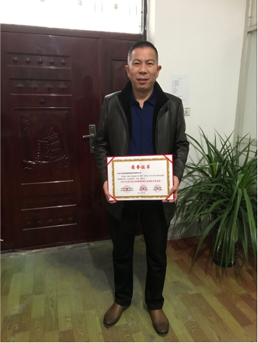 億家同陽太陽能董事長陳永峰高興的捧這這個沉甸甸的獎狀