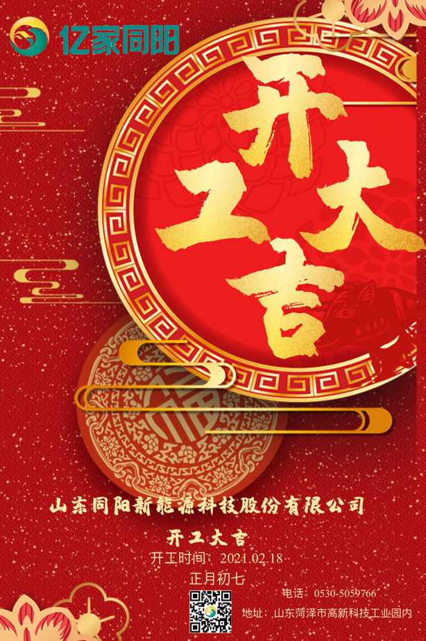 新春開啟新征程,新目標期待新作為。值此辭舊迎新之際,山東同陽新能源科技股份有限公司董事長陳永峰向勇爭第一的全體億家同陽人,向一如既往支持的新老客戶,向關心關懷億家同陽成長的社會各界人士,致以新春的問候和美好的祝福。