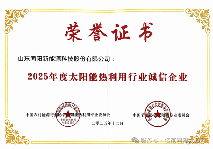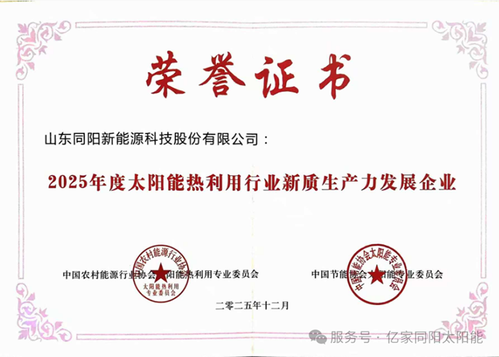 載譽(yù)歸來(lái),初心如磐。未來(lái),同陽(yáng)新能源將繼續(xù)懷揣“草根”韌勁,以團(tuán)結(jié)奮進(jìn)的姿態(tài)深耕新能源賽道,在技術(shù)創(chuàng)新中錘煉核心競(jìng)爭(zhēng)力,在產(chǎn)業(yè)協(xié)同中踐行社會(huì)責(zé)任,與行業(yè)同仁共繪太陽(yáng)能熱利用產(chǎn)業(yè)高質(zhì)量發(fā)展新藍(lán)圖!